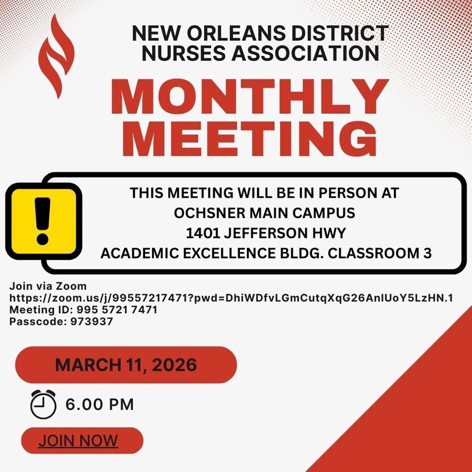 The mission of the New Orleans District Nurses Association, District 7, is to support all nurses through education, health policy, leadership, and advancing health care for all people. We aim to foster high standards for professional nursing practice for all Registered Nurses and to advocate for quality healthcare for the citizens of Louisiana.